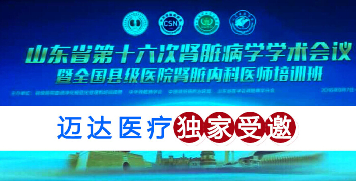 2016年9月8日至9日,吉林省邁達醫療器械股份有限公司(簡稱:邁達醫療)作為獨家受邀的腹膜透析機生產廠家出席了在濟南召開的山東省第十六次腎臟病學學術會議。本次不僅是山東省腎內科年會,也是山東省縣級腎內科培訓會議,集結省內外著名專家, 就腎臟病及血液凈化學領域的新進展和熱點問題作專題報告。