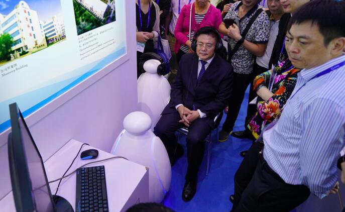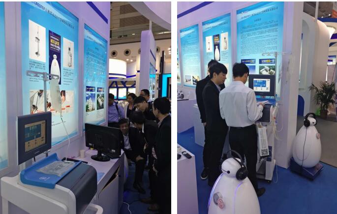 以吉林省副省長李晉修為首的代表團(tuán)蒞臨邁達(dá)醫(yī)療展位,分別了解公司發(fā)展歷程及主推的2款產(chǎn)品,其中副省長李晉修及省內(nèi)其它數(shù)十人領(lǐng)導(dǎo)紛紛進(jìn)行一一體驗(yàn),在短短十分鐘左右的時(shí)間,邁達(dá)醫(yī)療健康天使家用機(jī)器人即可通過自動檢測系統(tǒng)篩查出體驗(yàn)者目前及潛在存在疾病。